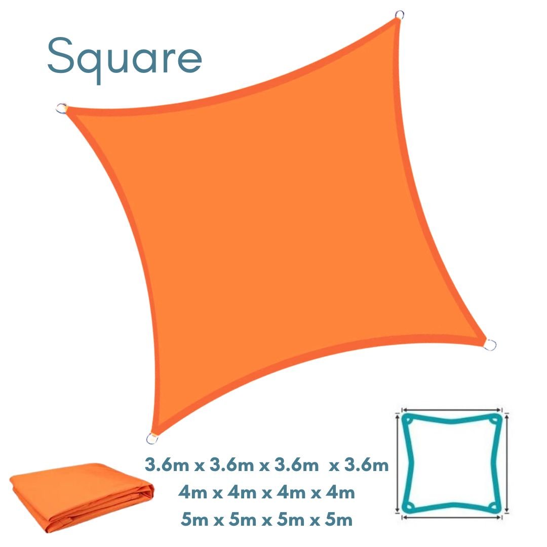 Square Orange Sun Shade Sail - Water Resistant UV Garden Canopy Awning 3.6m 4m 5m - Clara Shade Sails - Clara Shade Sails - 3.6m -