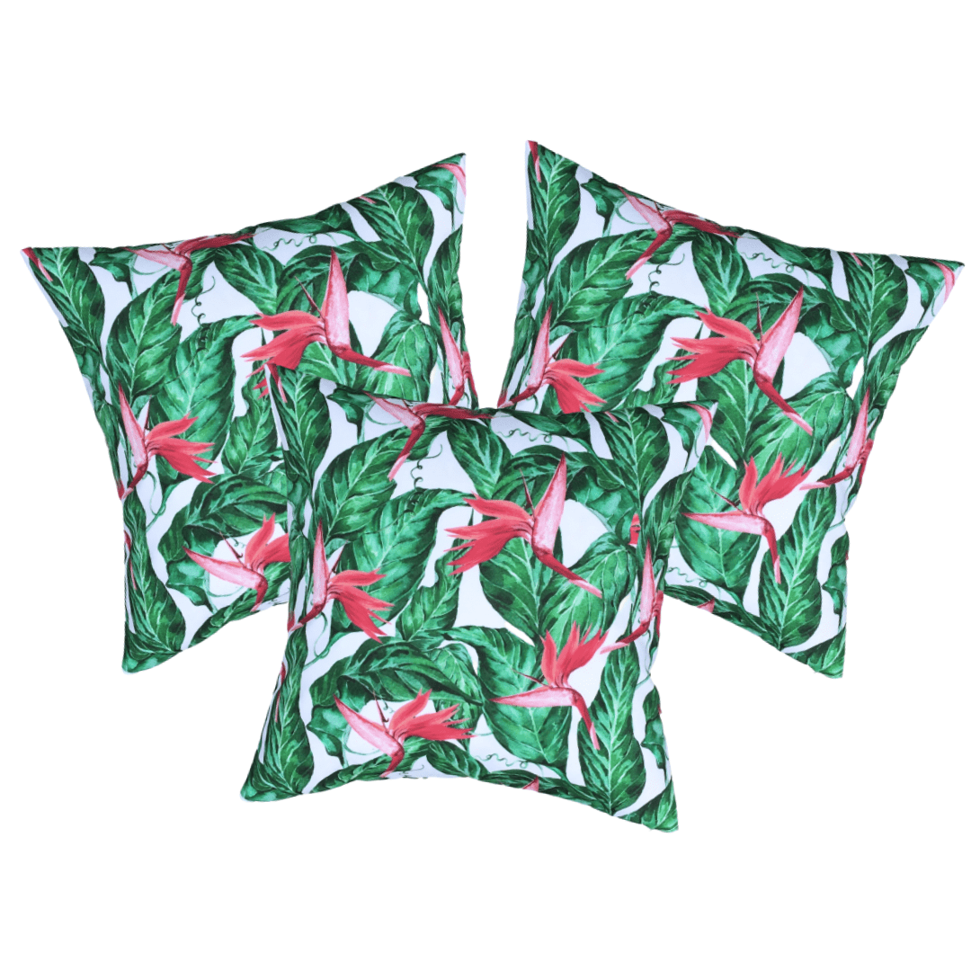 Set of 3 Tropical Water Resistant Garden Cushion Covers Scatter Pillow Cover Jungle Leaf Pink Flower Rainforest - Clara Shade Sails - Clara Shade Sails - 3 x Bird of Paradise -