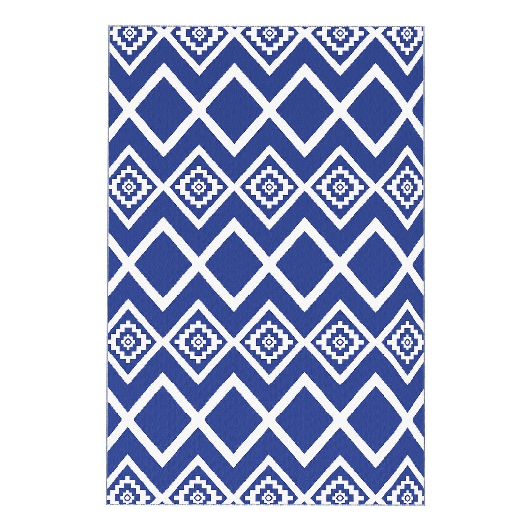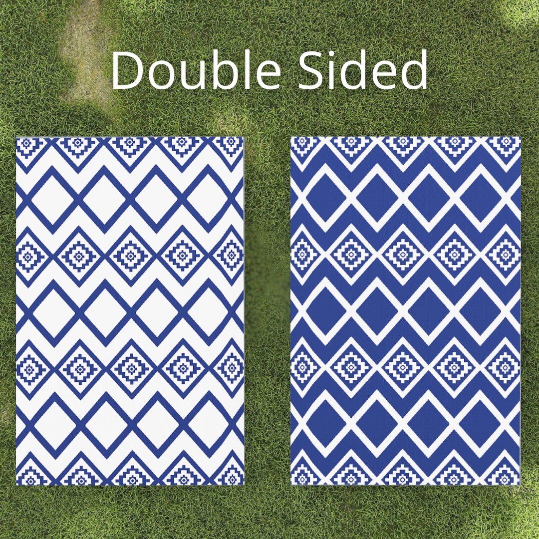 Outsunny Reversible Outdoor Garden Rug – Blue & White Geometric (182cm x 274cm)