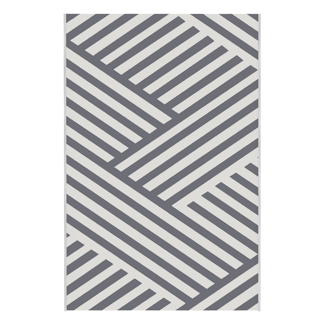 Outsunny Reversible Outdoor Garden Rug – Grey & Cream Stripe (182cm x 274cm) - Clara Shade Sails - Outsunny -