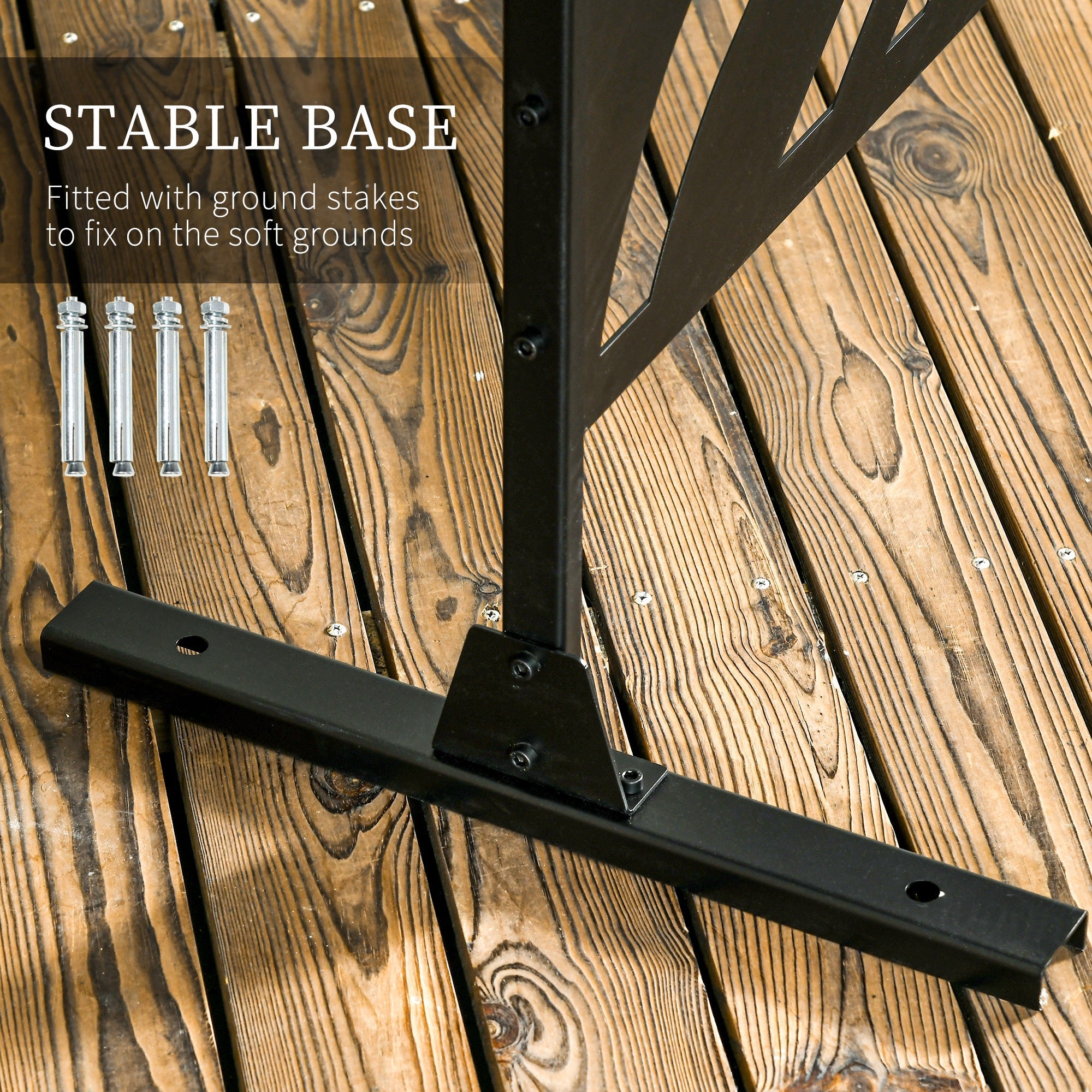 Outsunny Decorative Black Metal Garden Privacy Screen, Large Leaves Pattern