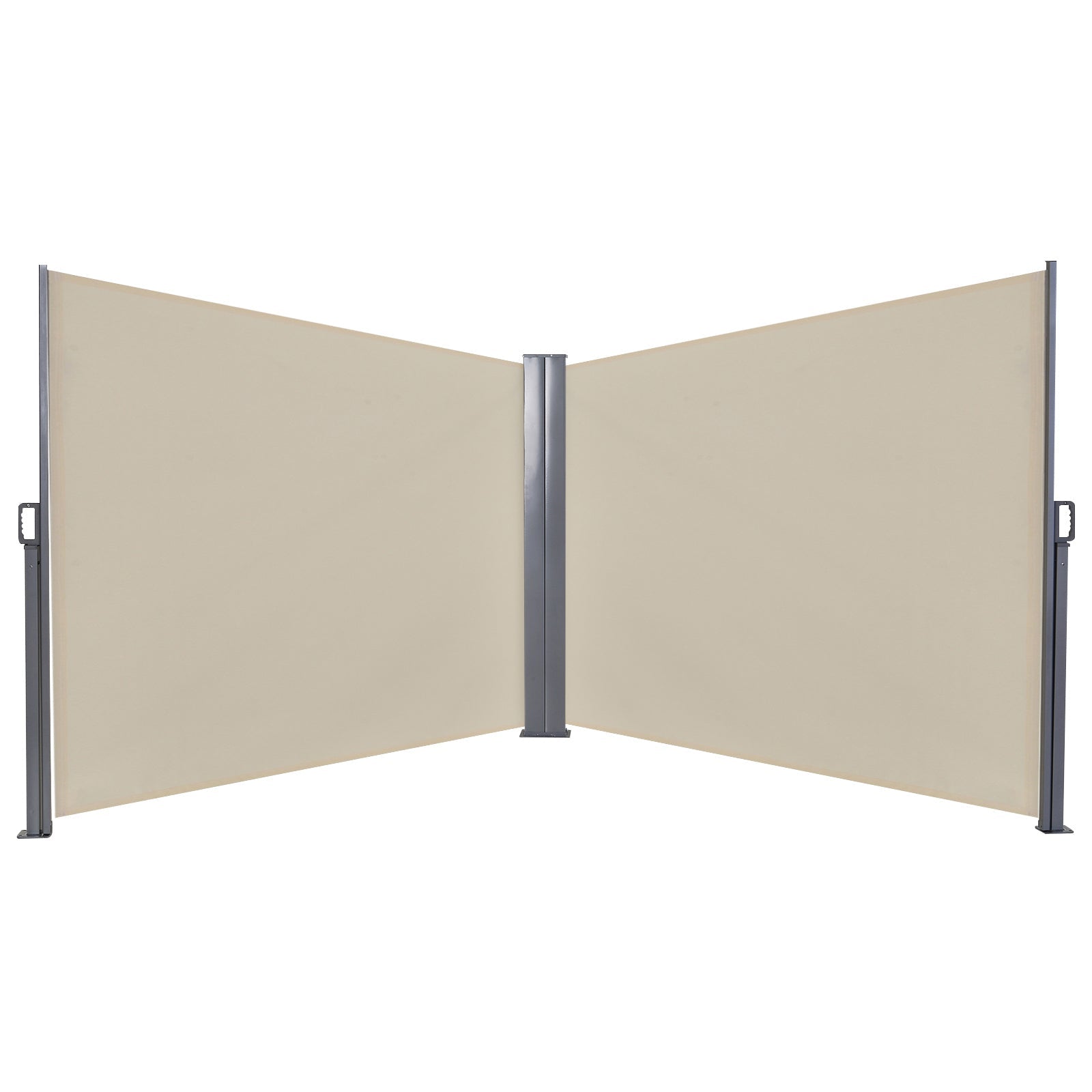 Outsunny Double Retractable Side Awning Privacy Screen, Beige - 6m x 1.6m